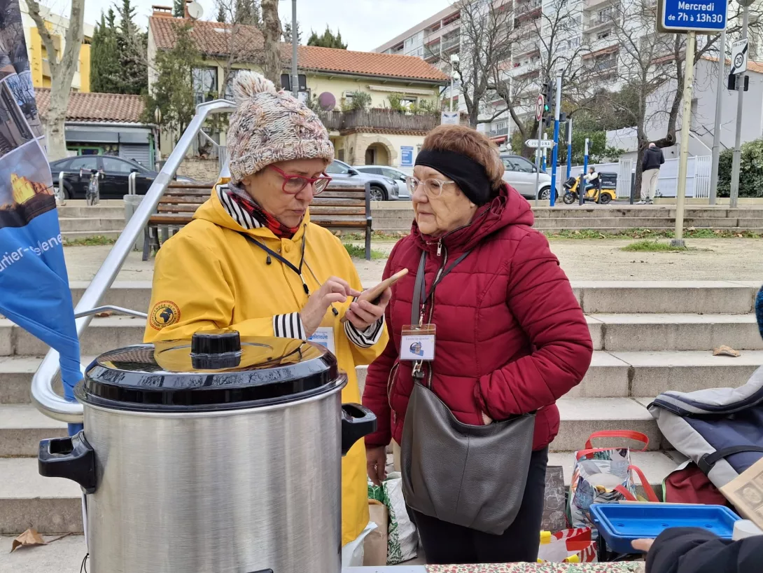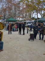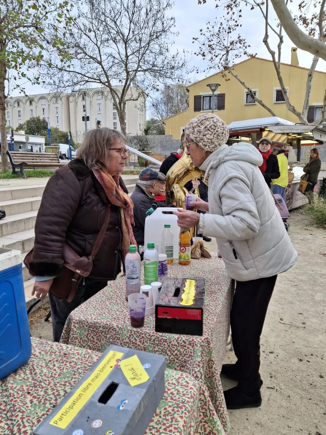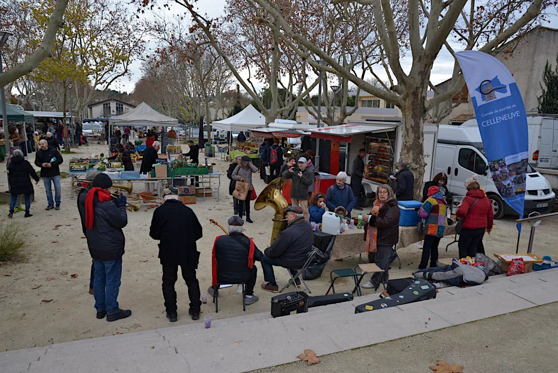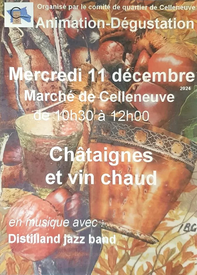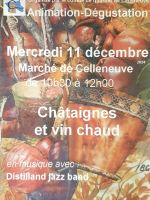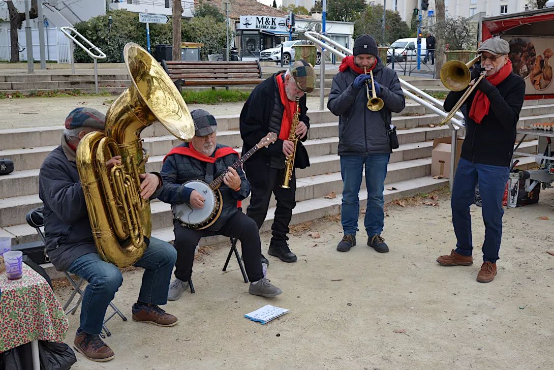 En décembre, sur le marché de Celleneuve, châtaignes et vin chaud ont été accompagnés en musique par le groupe Distilland Jazz Band, ce qui a permis de réchauffer l'atmosphère. Comme d'habitude vous avez été nombreuses et nombreux à partager ce moment convivial.