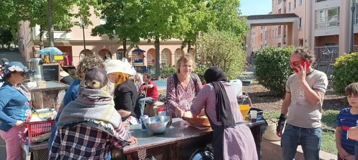 Les associations et structures du quartier était place Mansart hier après-midi : stands, repas partagé, démonstrations et peinture "Faces de Fresque" de Carole Tricard.