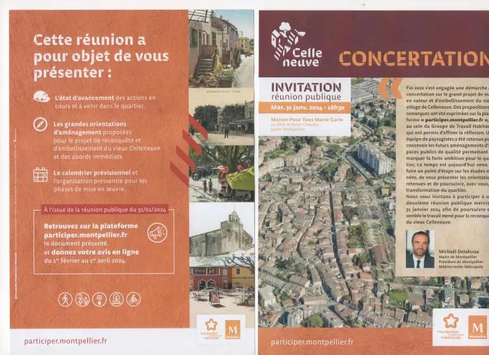 Nous avons appris par un prospectus que la réunion publique sur l'aménagement de Celleneuve se tiendrait le