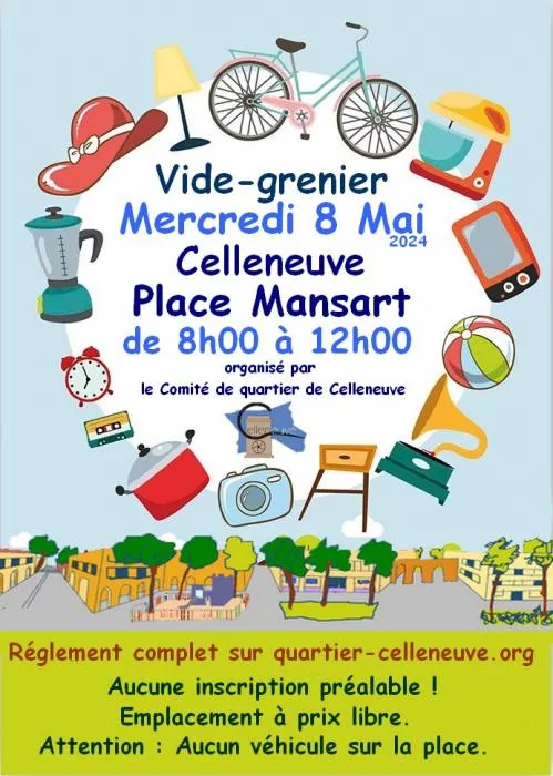 - Le vide grenier se déroulera de 8h00 à 12h00.