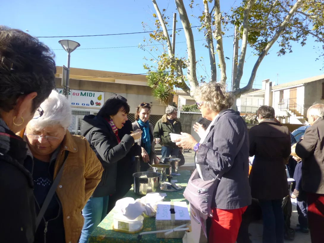 Et c’est dans la plus grande convivialité que nous avons pu déguster les bonnes soupes amenées par des habitants du quartier : à la courgette, au potiron, aux carottes, au chou-fleur, et divers autres légumes…