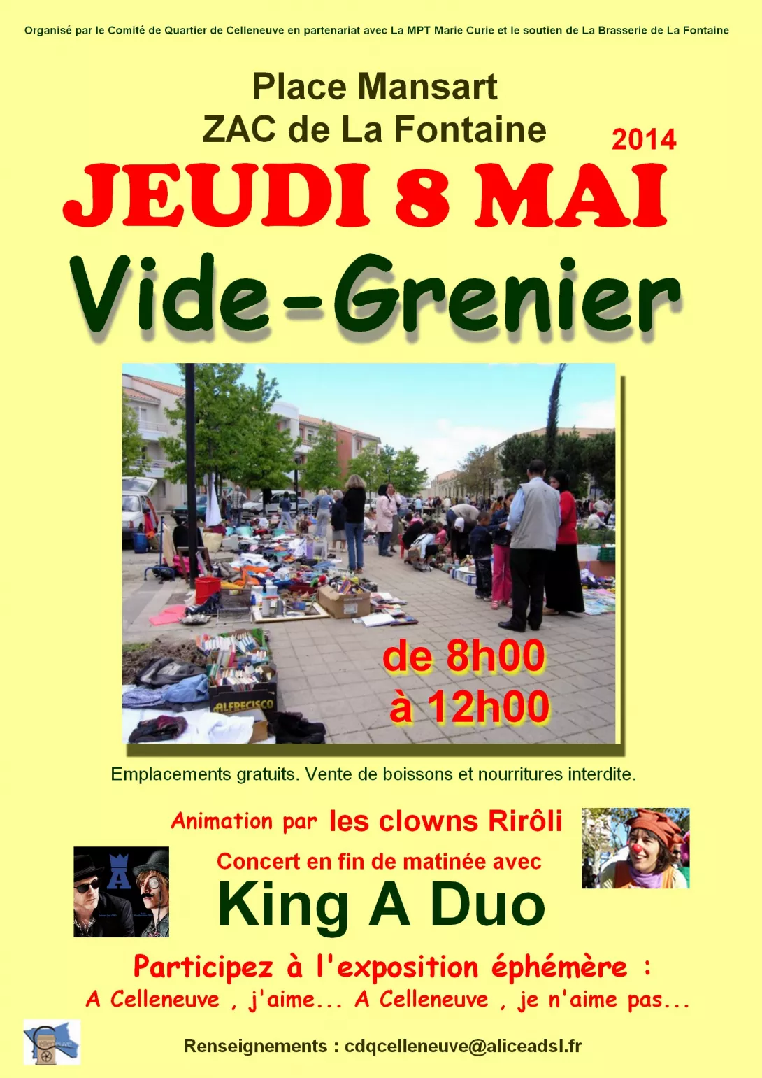 Animations dans la matinée par les clowns Rirôli suivi d'un concert par le groupe King A Duo.