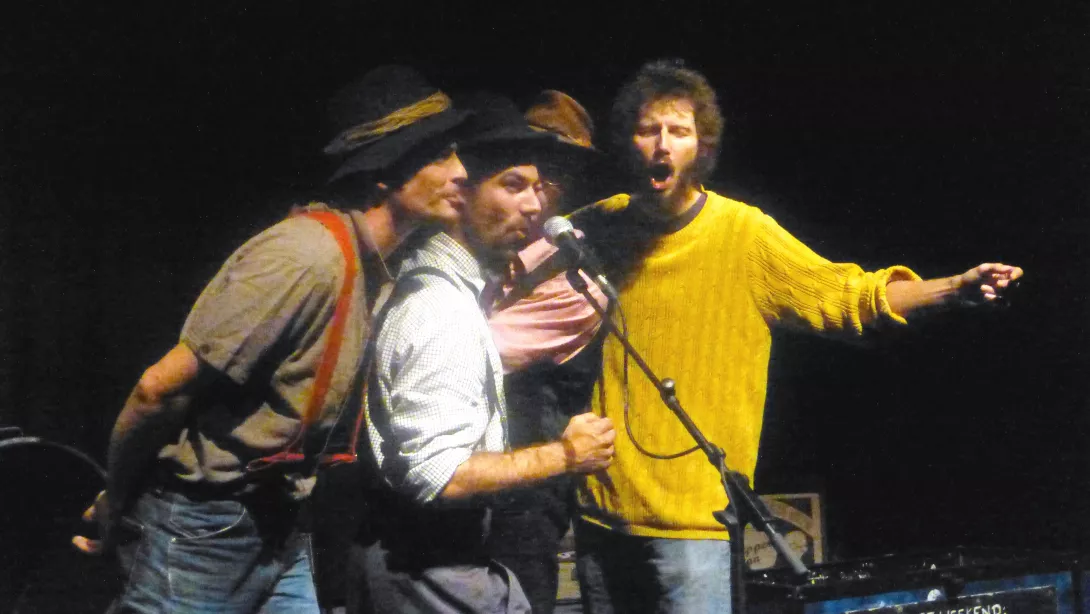 Après le spectacle, nous nous sommes transportés au cinéma Nestor Burma pour voir le film O’Brother avec, en ouverture, un concert différent du précédent par le même guitariste ( musique country comme dans le film). Le jongleur a présenté d’autres numéros puis, avec 3 joyeux compères, s’est lancé dans un tour de chant endiablé.