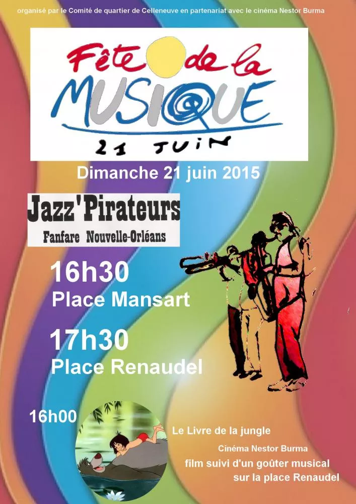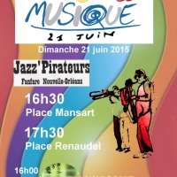Un moment musical en fin d'après-midi.... avec les Jazz'pirateurs, fanfare New Orléans, à 16h30 sur la place Mansart, le dimanche 21 juin.