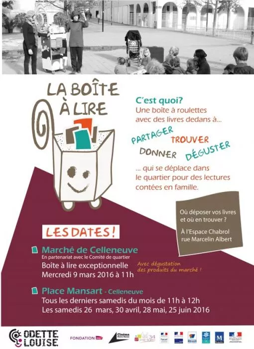- Boîte à lire exceptionnelle le mercredi 9 mars sur le Marché de Celleneuve à partir de 11h suivie d'une dégustation de produits frais.