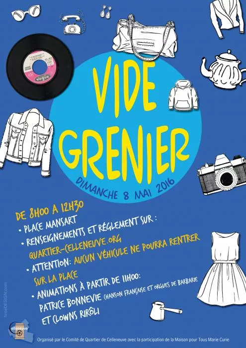 Le vide grenier se déroulera de 8h00 à 12h30. Accueil des participants à partir de 7h00.