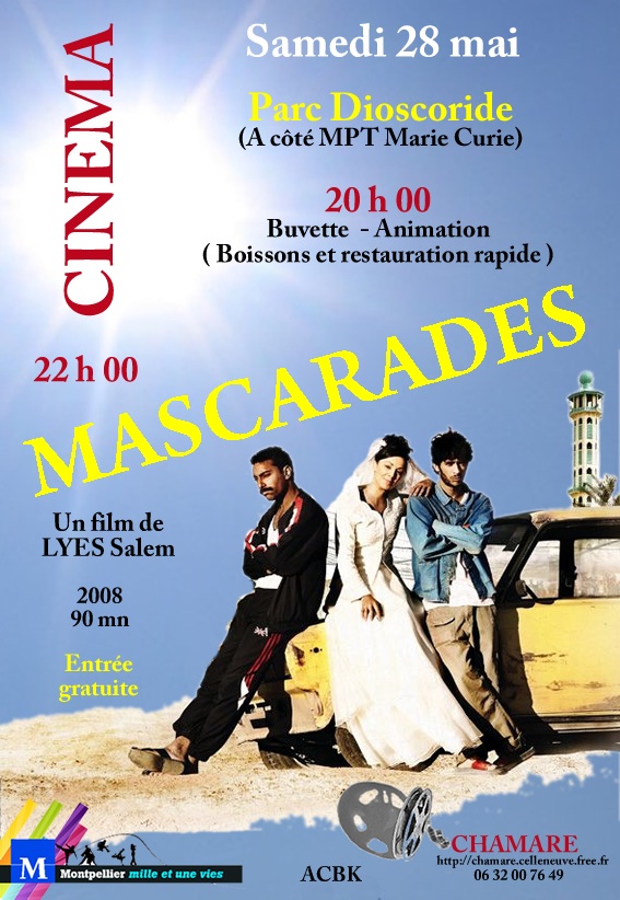 Samedi 28 mai - Cinéma en plein air - Soirée au parc Dioscoride. 20h: animation musicale/buvette - 22h: Mascarades de Lyes Salem