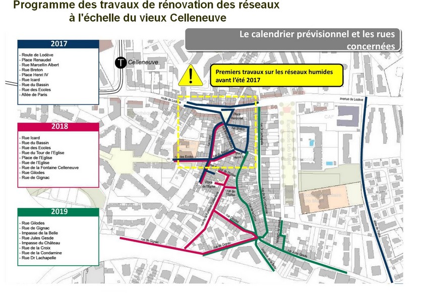 De nombreuses autres rues du vieux Celleneuve concernant la rénovation de réseaux ( humides, gaz, électriqcité, Orange et Numéricable) sont prévus pour 2018 et 2019 (voir carte en pièce-jointe).