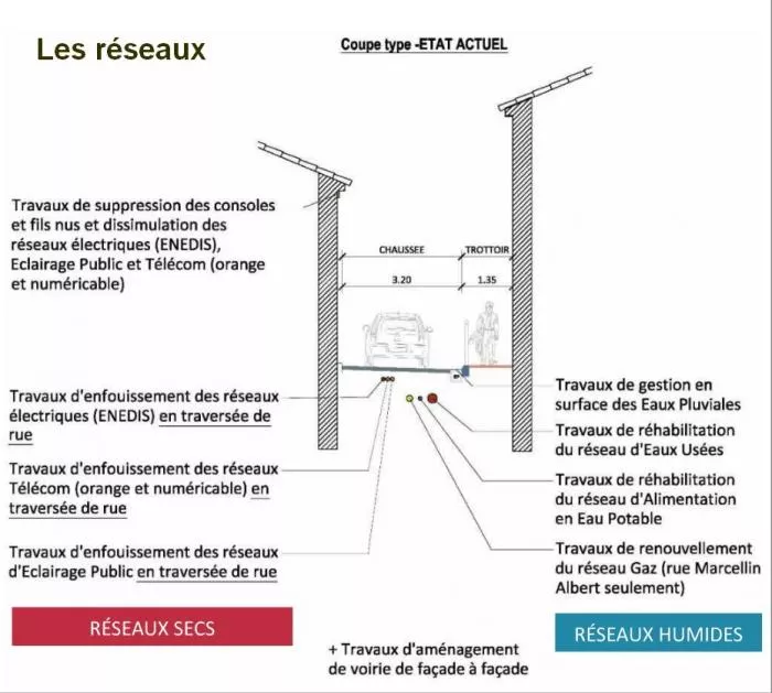 Ces travaux, touchant au réseau d'eaux pluviales, d'eaux usées et d'eau potable concerneront les rues suivantes : route de Lodéve, Place Renaudel, Rue Marcelin Albert, Rue du bassin, Rue Icard, Rue des écoles, Rue Breton, Place Henri IV et Allée de Paris.