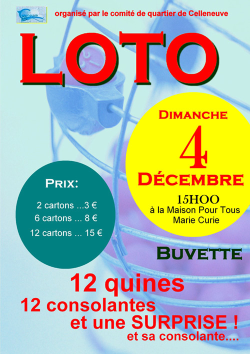 Loto 2011 de Celleneuve - 4 décembre 15h00 - Maison pout tous Marie Curie