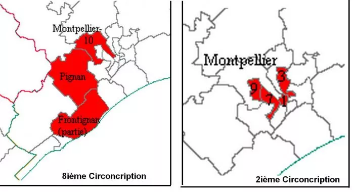 8° circonscription: cantons de Frontignan (sans la commune de Villeneuve lès Maguelone), de Pignan et de Montpellier canton 10