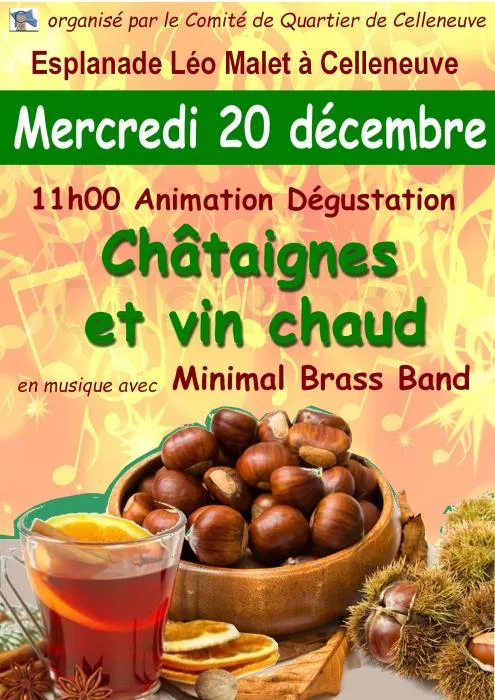 Mercredi 20 décembre à partir de 11h00 : Chataignes et vin chaud sur le marché de Celleneuve.
