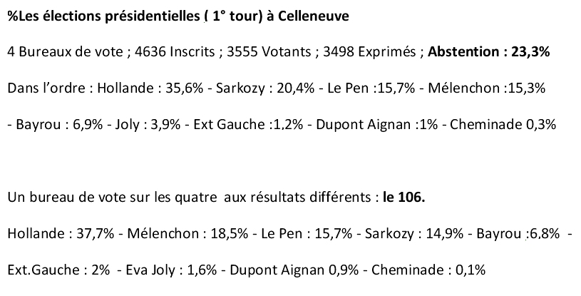 Les résultats du 1er tour des élections présidentielles 2012 sur Celleneuve