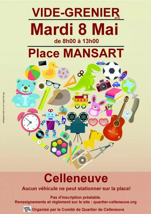 Pas d'inscription préalable, elles sont prises sur place; Emplacement de 3mX2m, prix libre.