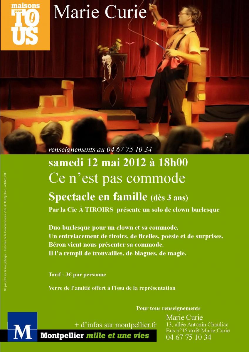 Samedi 12 mai - "Ce n'est pas commode" - spectacle maison pour tous Marie Curie