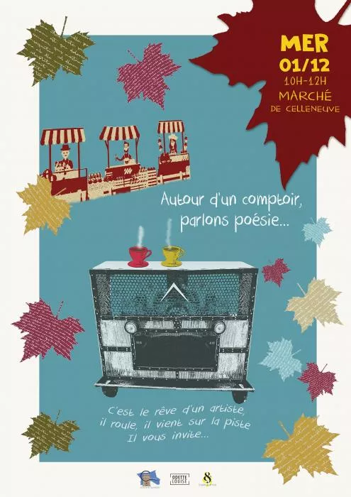 Le Comité de quartier de Celleneuve, l’association Odette Louise et l’association L’Esperluette vous proposent de parler poésie autour d’un comptoir sur le marché de Celleneuve le mercredi 1er décembre 2021 de 10 heures à midi.