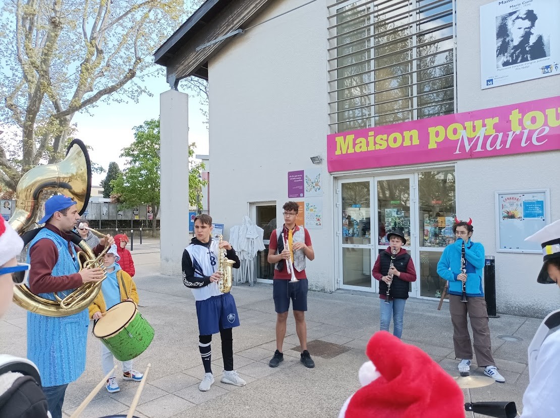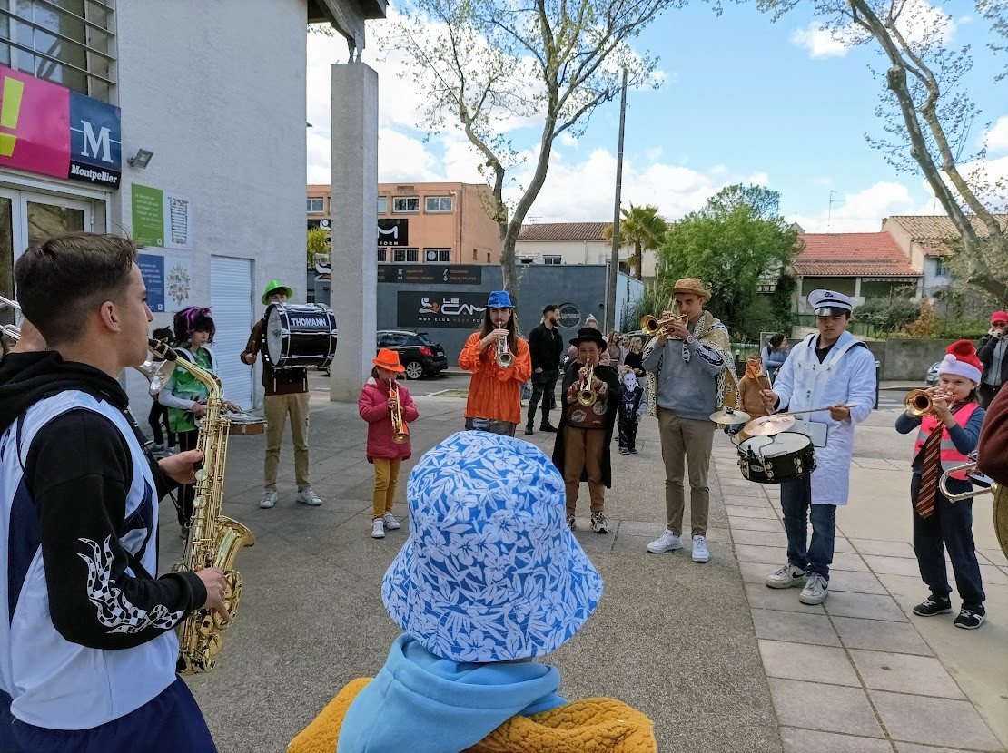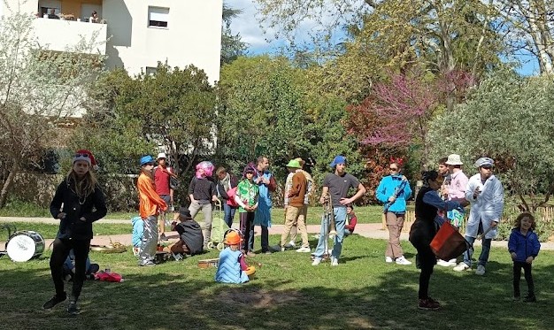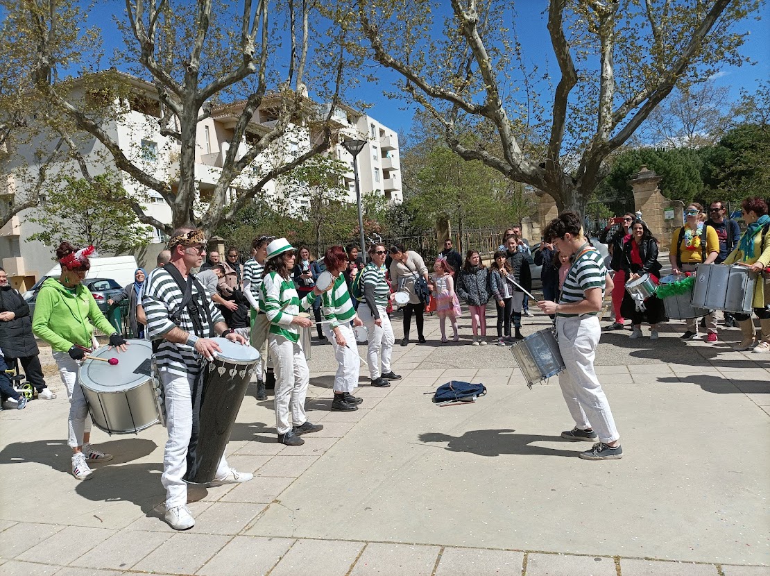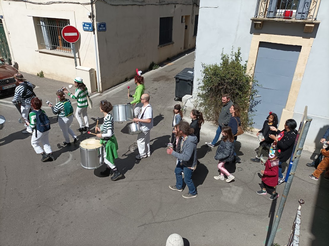 Les Loustics du pic et les batucadas ont accompagné avec brio la déambulation dans les rues de Celleneuve et le goûter au parc Dioscoride.